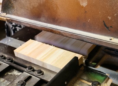 モルダーの出口には「超仕上げ」と呼ばれるかんな掛けをする大きな機械があり、枡の側板の場合は内側になる面をツルツルにかんな掛けします。